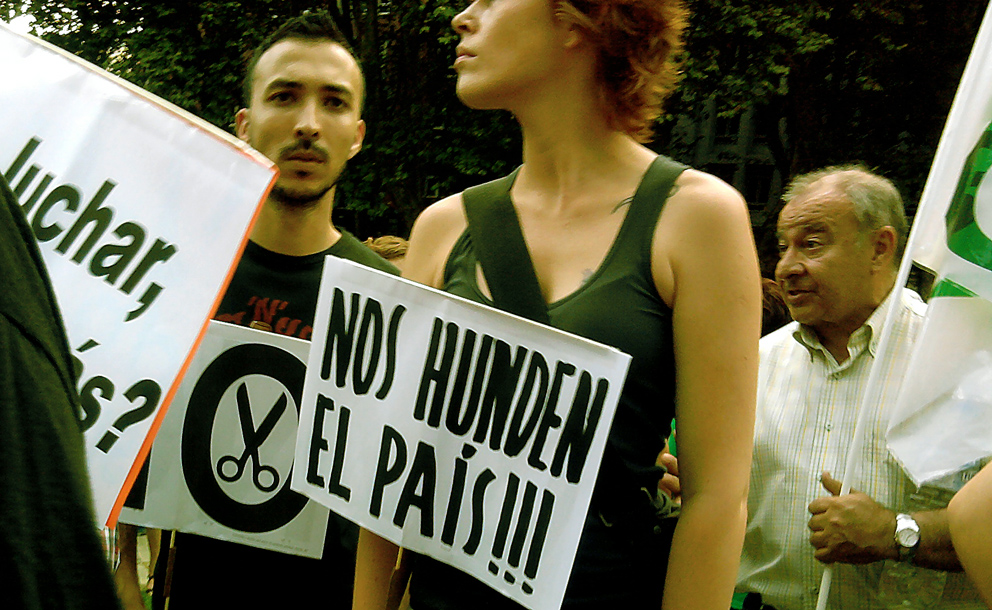 “venden la sanidad para salvar la banca”.“¡Gobierno y banqueros, los mismos